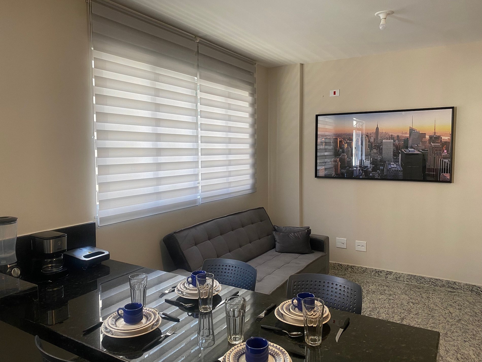 A unidade Locking´s Santo Agostinho 7 é um apartamento novo e moderno de aproximadamente 65 m² de dois quartos sendo uma suíte , sala com dois ambientes e cozinha. Situado ao lado do Diamond Mall, uma das regiões mais nobres de BH, é bem iluminado e arejado. Fica no quarto nível. O prédio possui elevador. Estacionamento para um carro. Todo o mobiliário, roupa de cama e eletrodomésticos novos.
