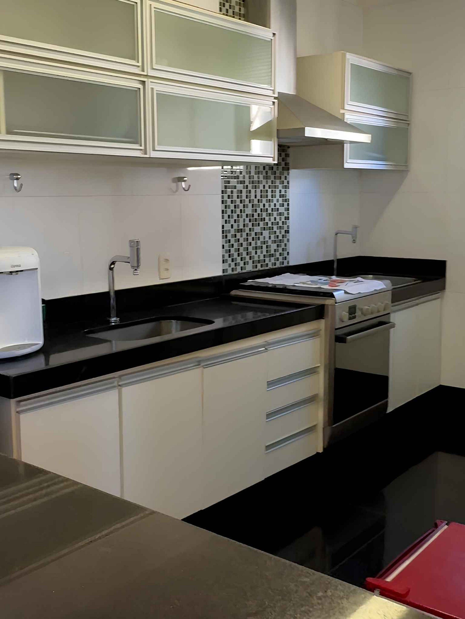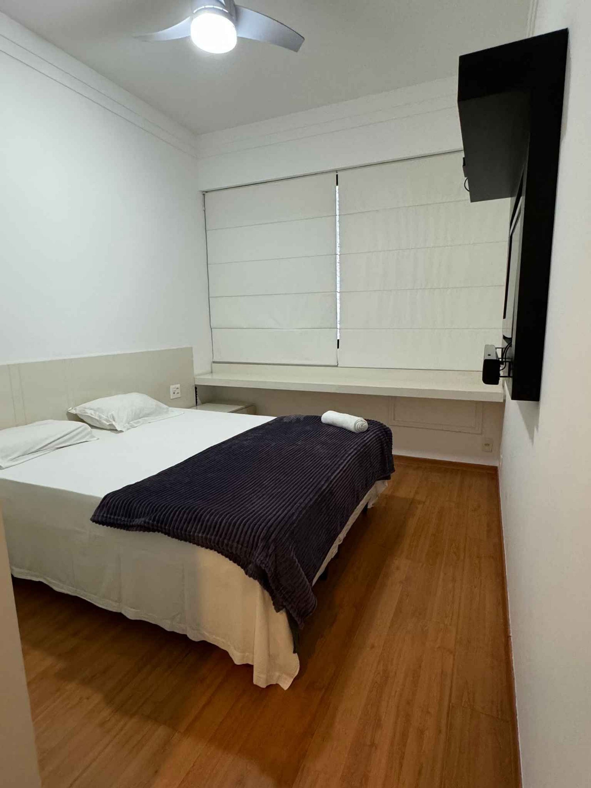 A suíte possui uma cama de casal, uma mesa de cabeceira e armário com cabides e televisão. O segundo quarto também conta com uma cama de casal, uma mesa de cabeceira e armário com cabides. O apartamento oferece travesseiros, roupa de cama e banho, shampoo e sabonete. A sala de estar possui um ambiente com uma uma mesa com quatro cadeiras para refeição e trabalho e um sofá com televisão 43". O outro ambiente é uma cozinha americana com armários, e está equipada com refrigerador fogão quatro bocas com forno, micro-ondas de 20L, sanduicheira inox grill, liquidificador, garrafa térmica com base de filtro para café e cafeteira elétrica .A cozinha possui também copos, taças, pratos rasos, pratos fundos, tigelas e talheres e xícaras para quatro pessoas. Esta disponível ferro e taboa de passar.