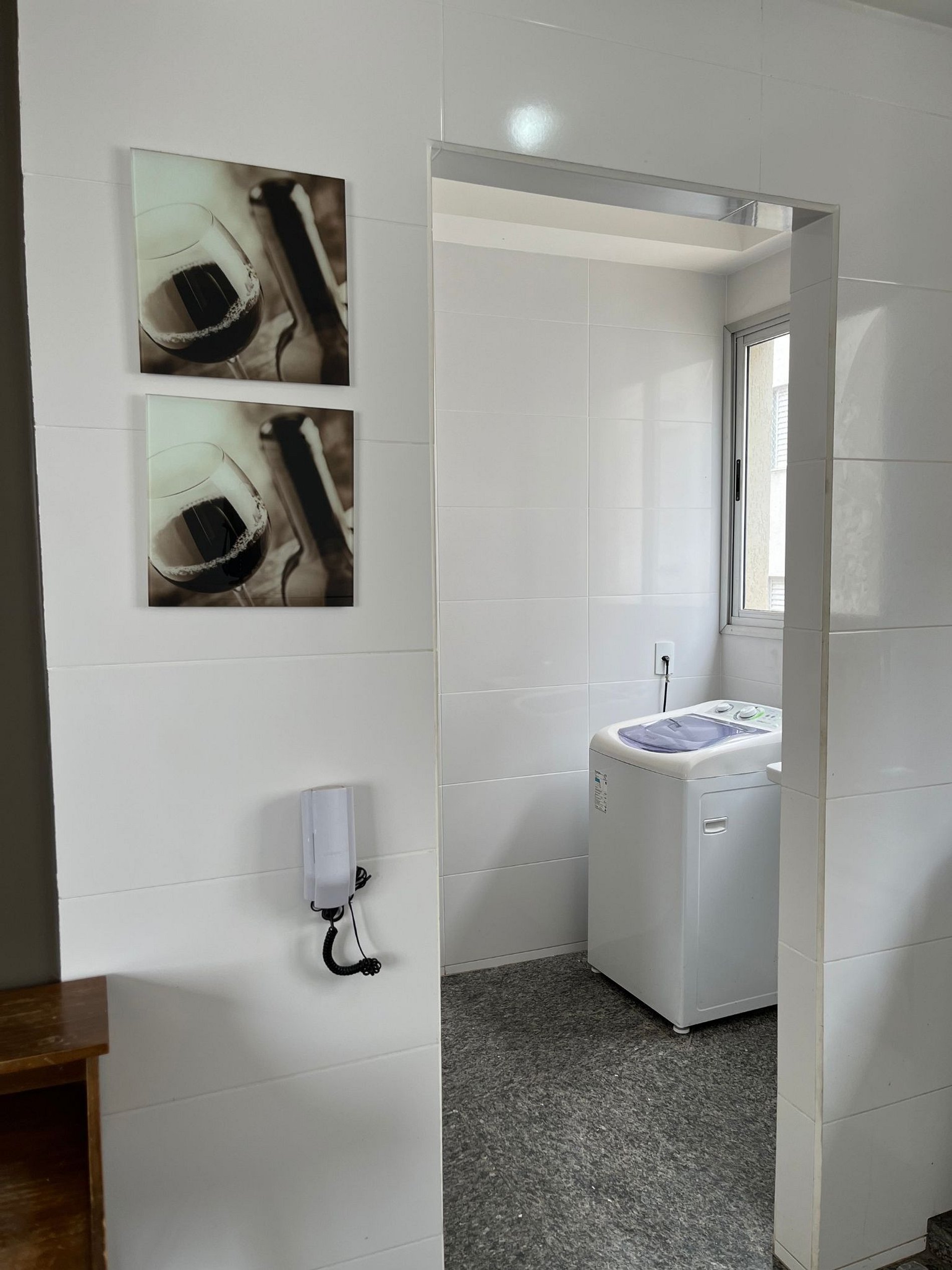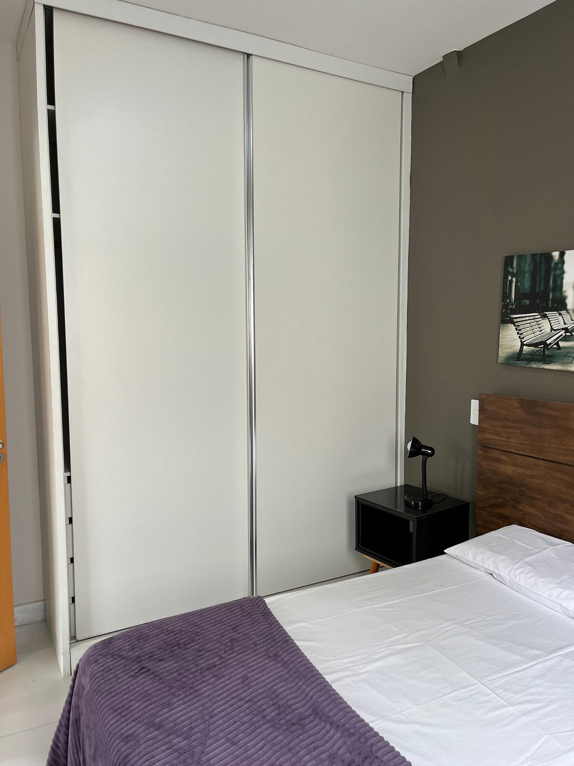 A suíte possui uma cama box de casal padrão, uma cama de solteiro e armário e cabides. O segundo quartos possui cama box de casal, mesa de cabeceira e também armário com cabides. O quarto e a sala são atendidos por um banheiro social. Todos os quartos e banheiros possuem travesseiros, roupa de cama e banho, shampoo e sabonete. A sala de estar possui um ambiente com uma estação de trabalho e uma mesa com quatro cadeiras, o outro ambiente conta com um sofá cama casal em tecido, um rack em madeira e uma TV de 32”. A cozinha, com armários, está equipada com refrigerador de 240 L, forno de Micro-ondas de 20L, fogão de quatro bocas com acendimento automático, sanduicheira inox grill, liquidificador, garrafa térmica com base de filtro para café e cafeteira elétrica. A cozinha possui também um jogo de seis panelas (frigideira, leiteira e panela de pressão) taboa e faca de corte, escorredor de macarrão, marinex, assadeiras, copos, taças, pratos rasos, pratos fundos, tigelas e talheres e xícaras para seis pessoas, e utensílios básicos de cozinha (escumadeira, peneira, concha, fouet, abridor de garrafa, saca rolha, cortador de pizza, cortador de queijo, etc). A área de serviço possui um tanque de 20 litros, lavadora de roupas 8 kg turbo, taboa e ferro de passar , varal de chão, cesto para roupa suja, balde, vassoura, rodo e pá, aspirador de pó, além de produtos básicos de limpeza.