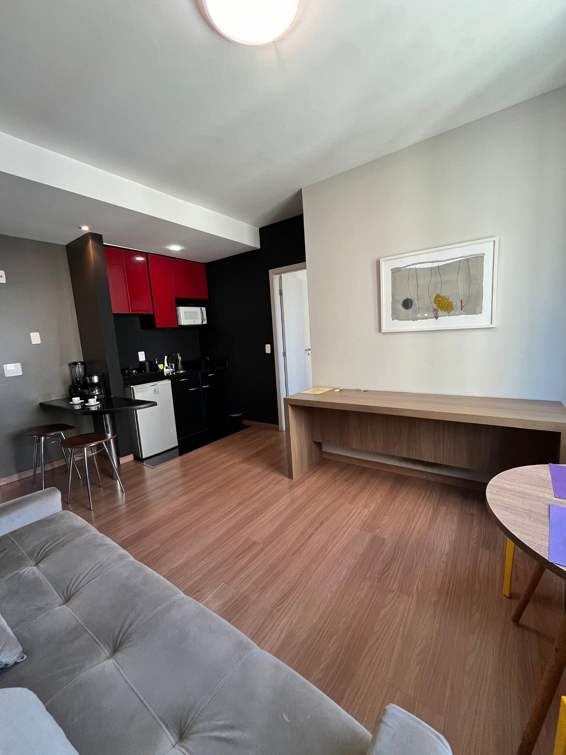 Apartamento tipo flat na região do Barro Preto com aproximadamente 50 m² com uma suíte, sala de estar e cozinha americana, com ar condicionado. O apartamento fica no décimo sexto nível do prédio com vista privilegiada, possui elevador. Portaria 24 horas. Wi-Fi e TV à Cabo gratuitos além de estacionamento para um carro. Todo o mobiliário, roupa de cama e eletrodomésticos novos. Esta situado em uma importe rua da região com acesso fácil ao comércio, restaurantes, bares, lojas, supermercados.