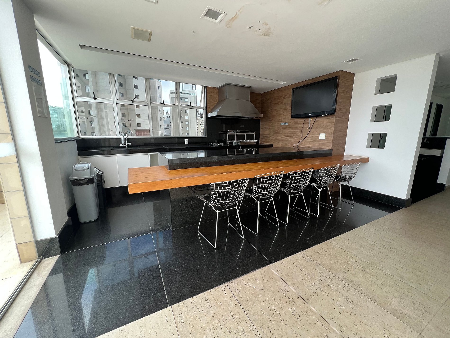 O prédio conta com área de lazer com piscina e academia de ginástica.