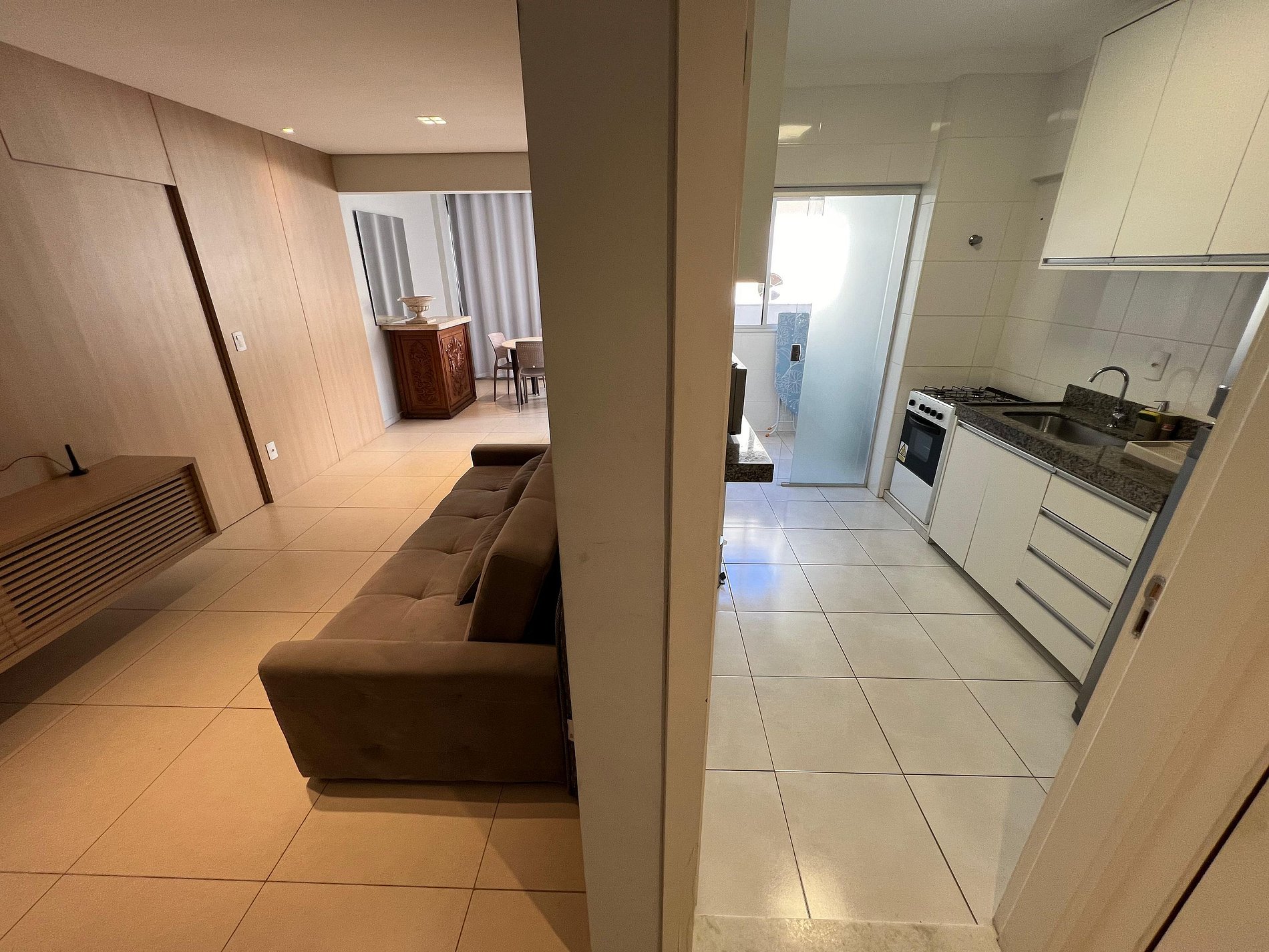 Um apartamento espaçoso com área privativa de aproximadamente 80m², ideal para quem busca praticidade e bem-estar durante a estadia. Conta com dois quartos (sendo uma suíte), banheiro social, sala em dois ambientes, cozinha equipada, área de serviço e uma varanda ampla perfeita para relaxar.