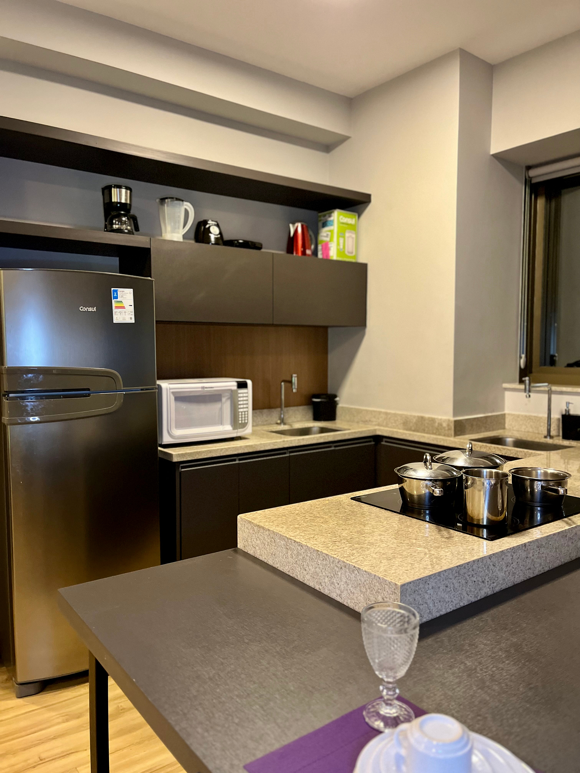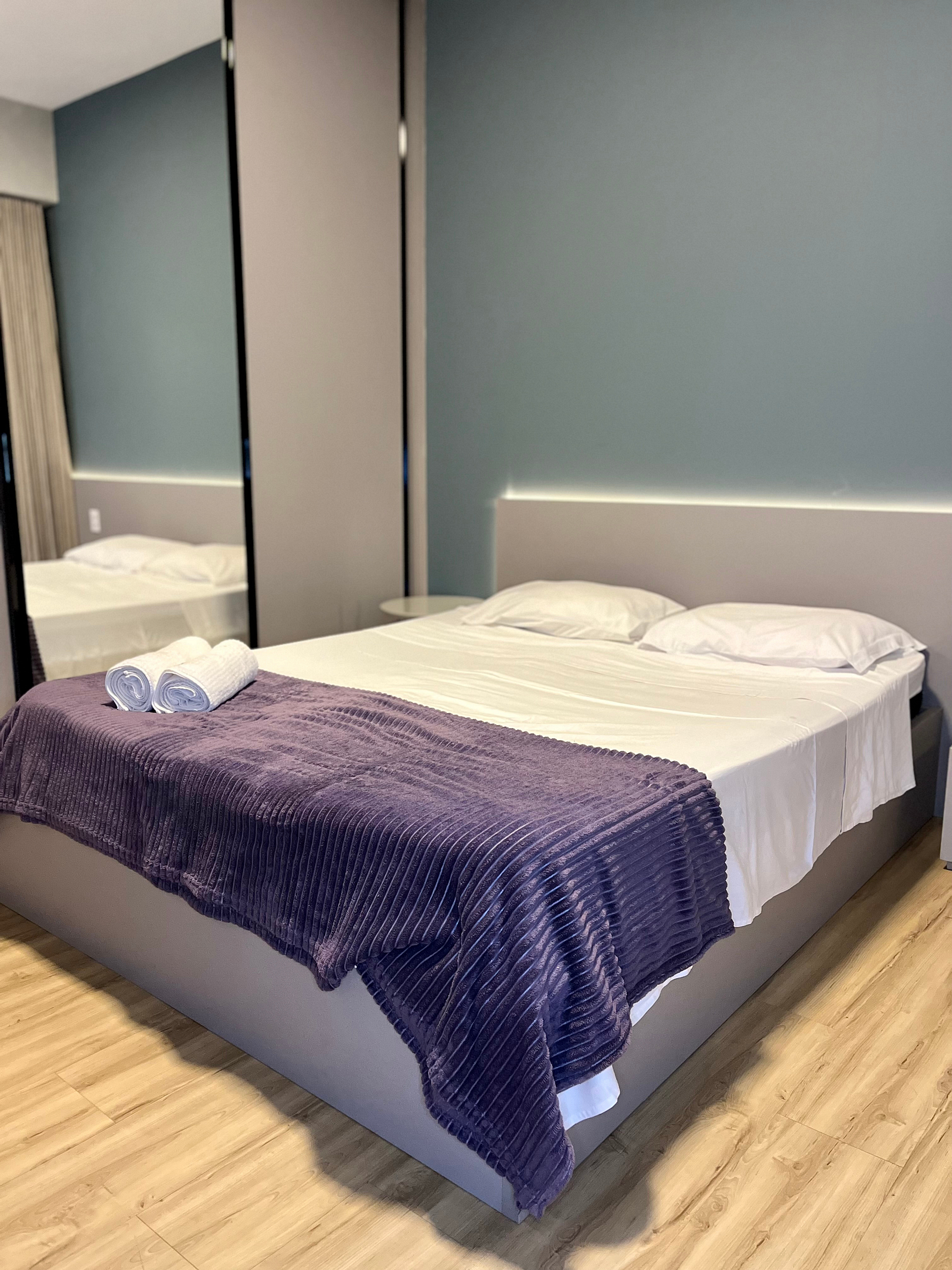 Ideal para quem busca conforto e praticidade em um só lugar. O apartamento é completo, com cozinha equipada, cama aconchegante e todos os itens essenciais para uma estadia tranquila. O edifício oferece lazer e conveniência, com piscina, jacuzzi, academia, sauna, mini mercado, coworking e lavanderia com agendamento — tudo pensado para tornar sua experiência ainda mais agradável.