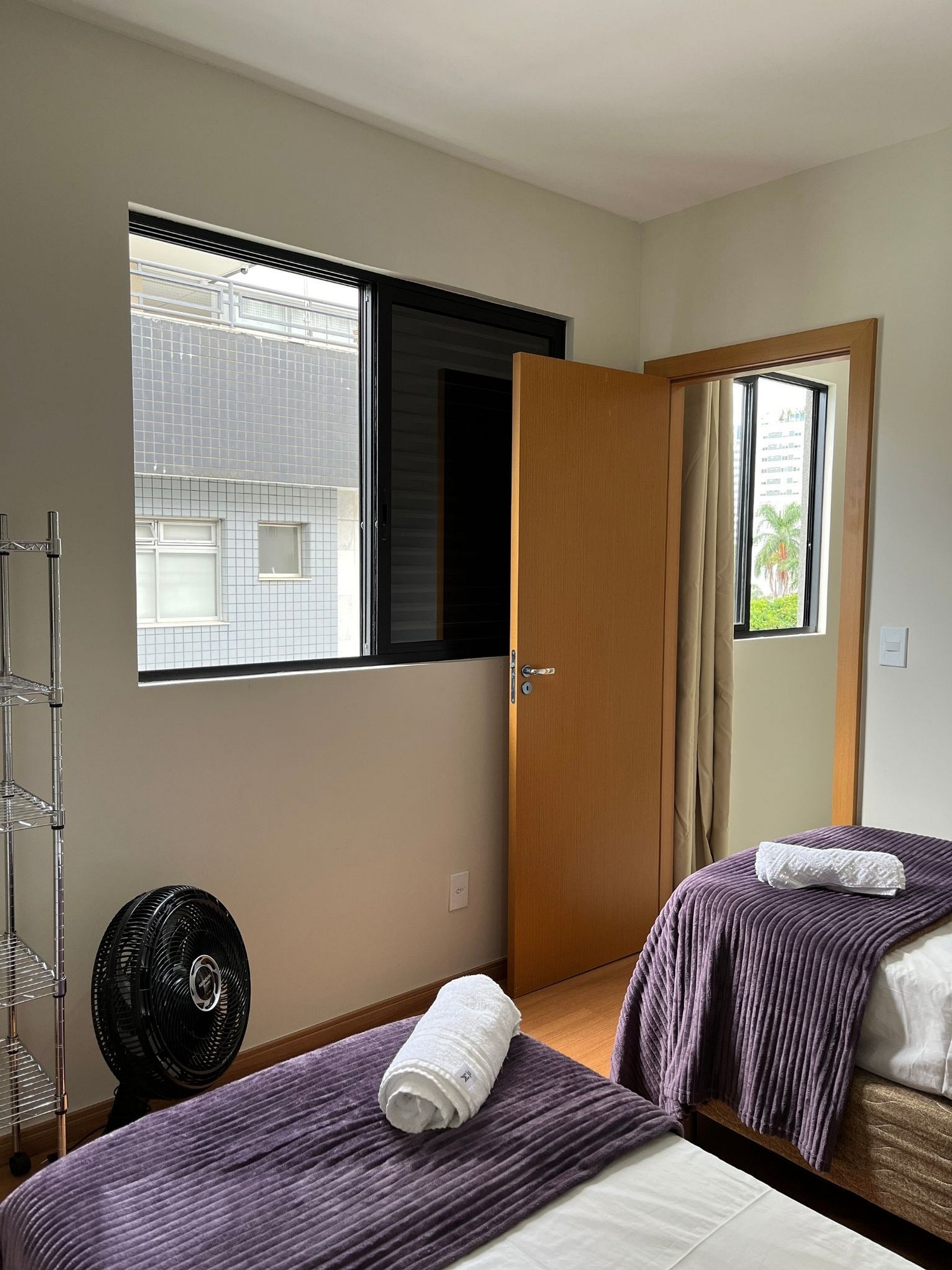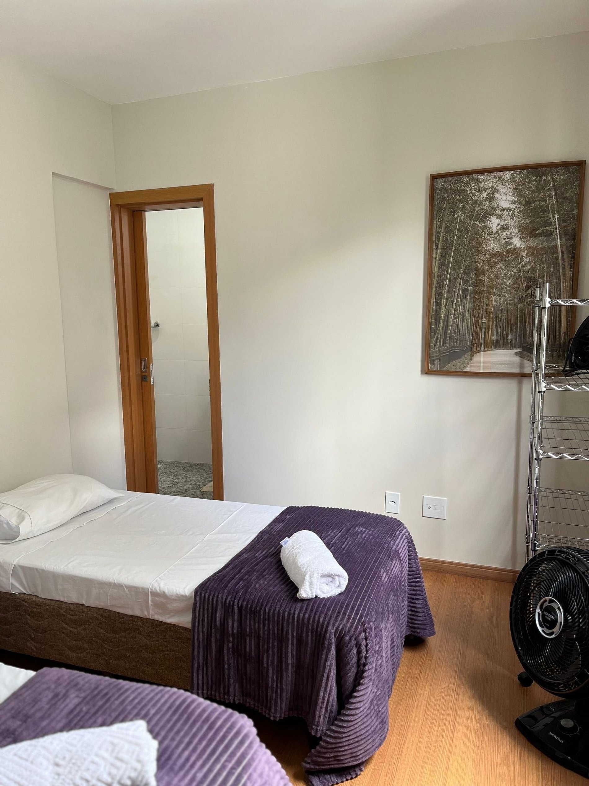 O apartamento oferece travesseiros, roupa de cama e banho, shampoo e sabonete.