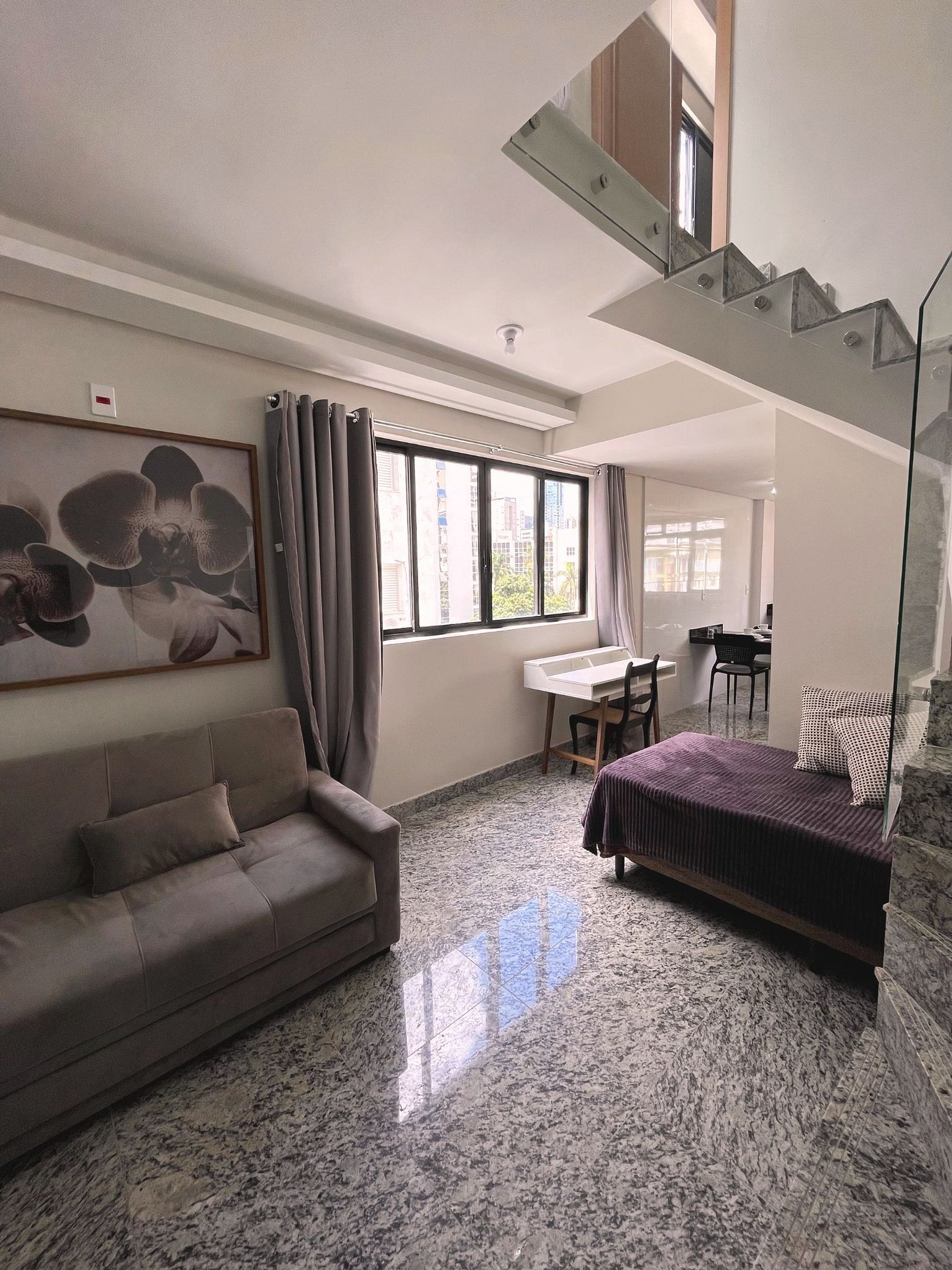 A unidade Locking`s Boa Viagem 1 é um apartamento duplex novo de 2 suítes na região da Savassi, a duas quadras da Praça da Liberdade com aproximadamente 100 m² com sala de estar e cozinha americana. O apartamento fica no nono andar do prédio, possui elevador. Wi-Fi de 200 megas (modem do apto) além de estacionamento para 02 carros (pequeno ou sedan médio).