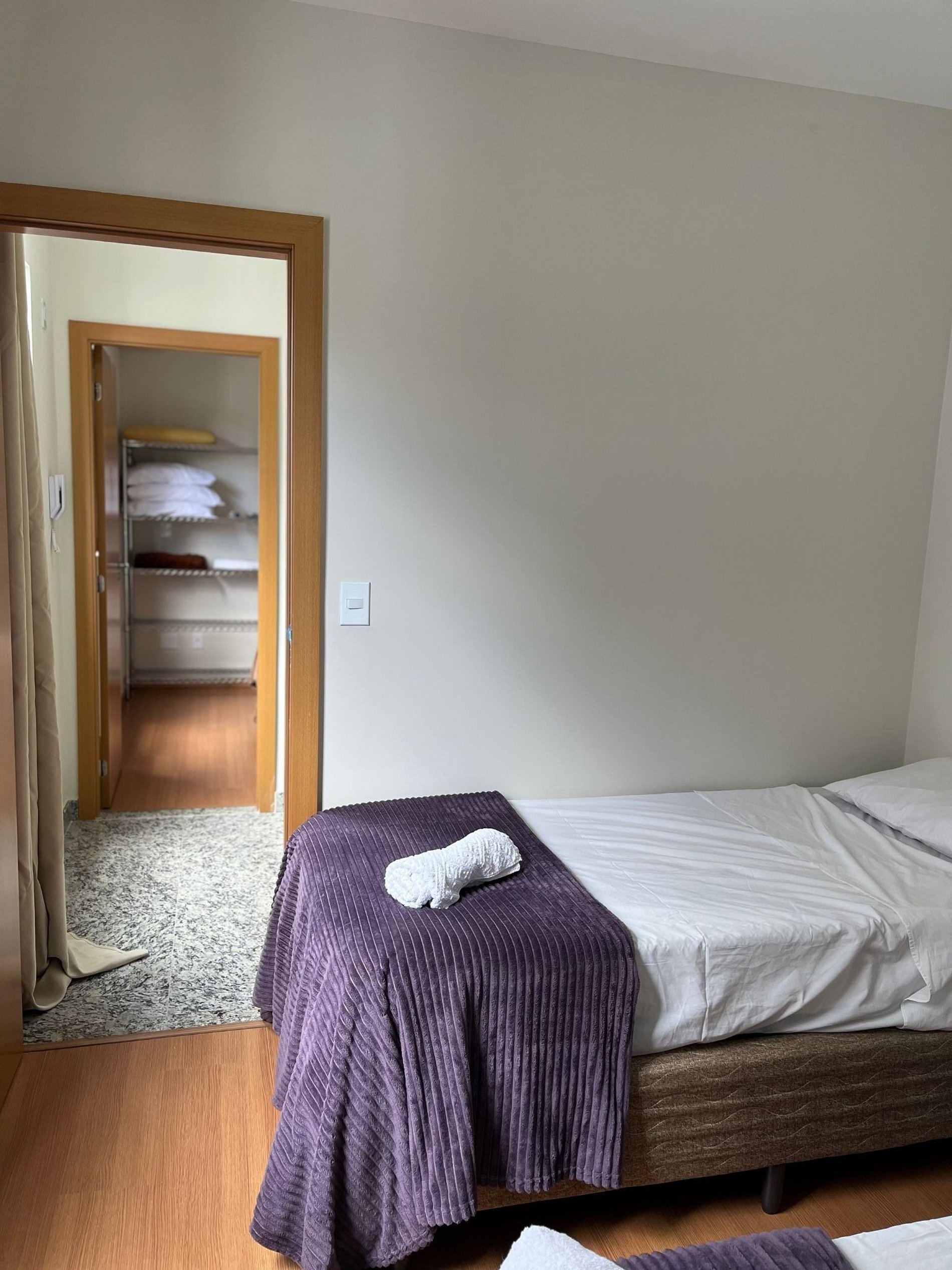 O apartamento oferece travesseiros, roupa de cama e banho, shampoo e sabonete.