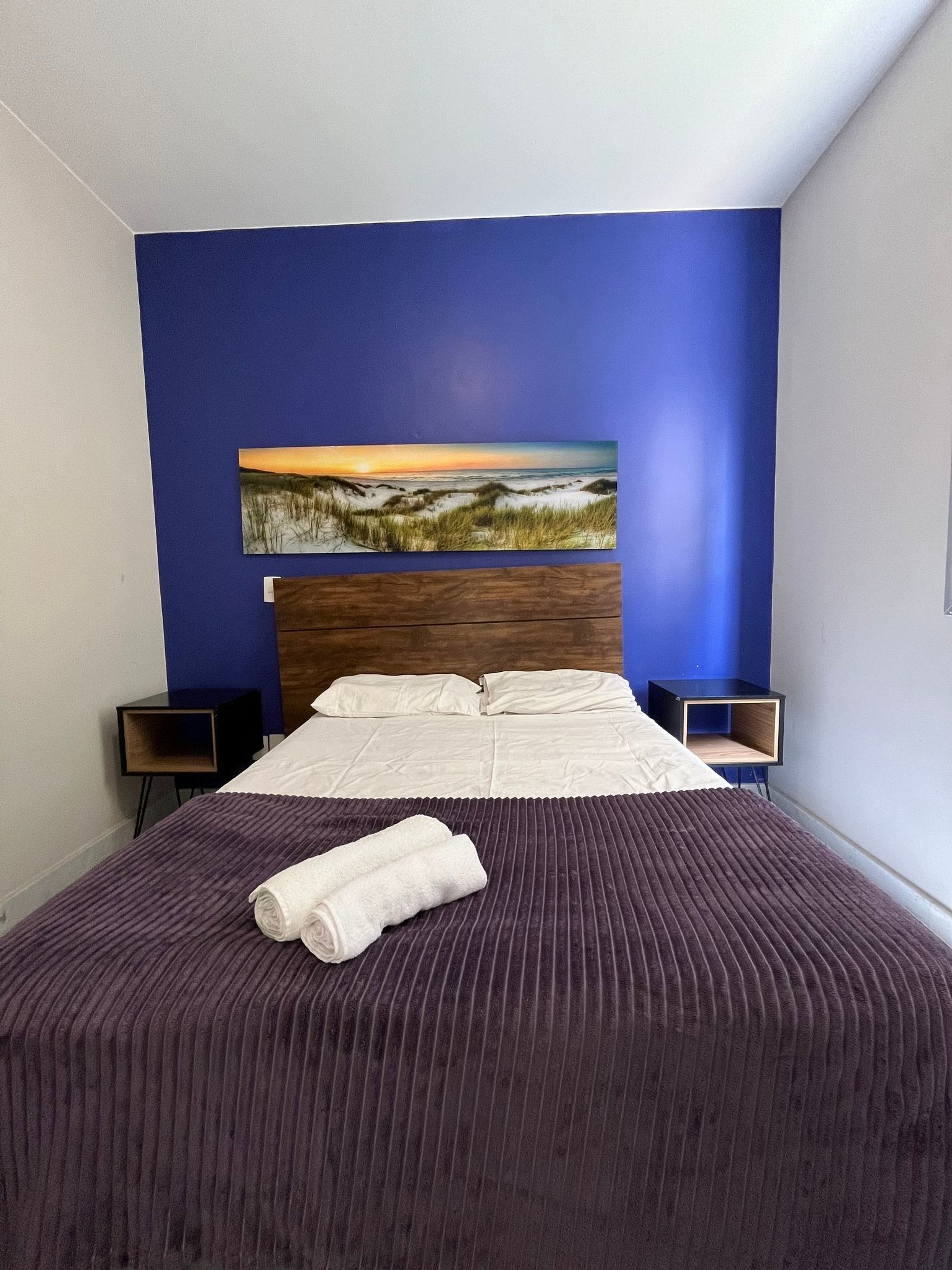 Ideal para grupos e famílias, o apartamento é espaçoso, confortável e muito bem equipado. Conta com três quartos com camas box de casal, sala com sofá-cama e espaço de trabalho, cozinha completa e área de serviço com lavadora e utensílios. O terraço com mesa e ombrelone é o lugar perfeito para compartilhar refeições e bons momentos juntos.