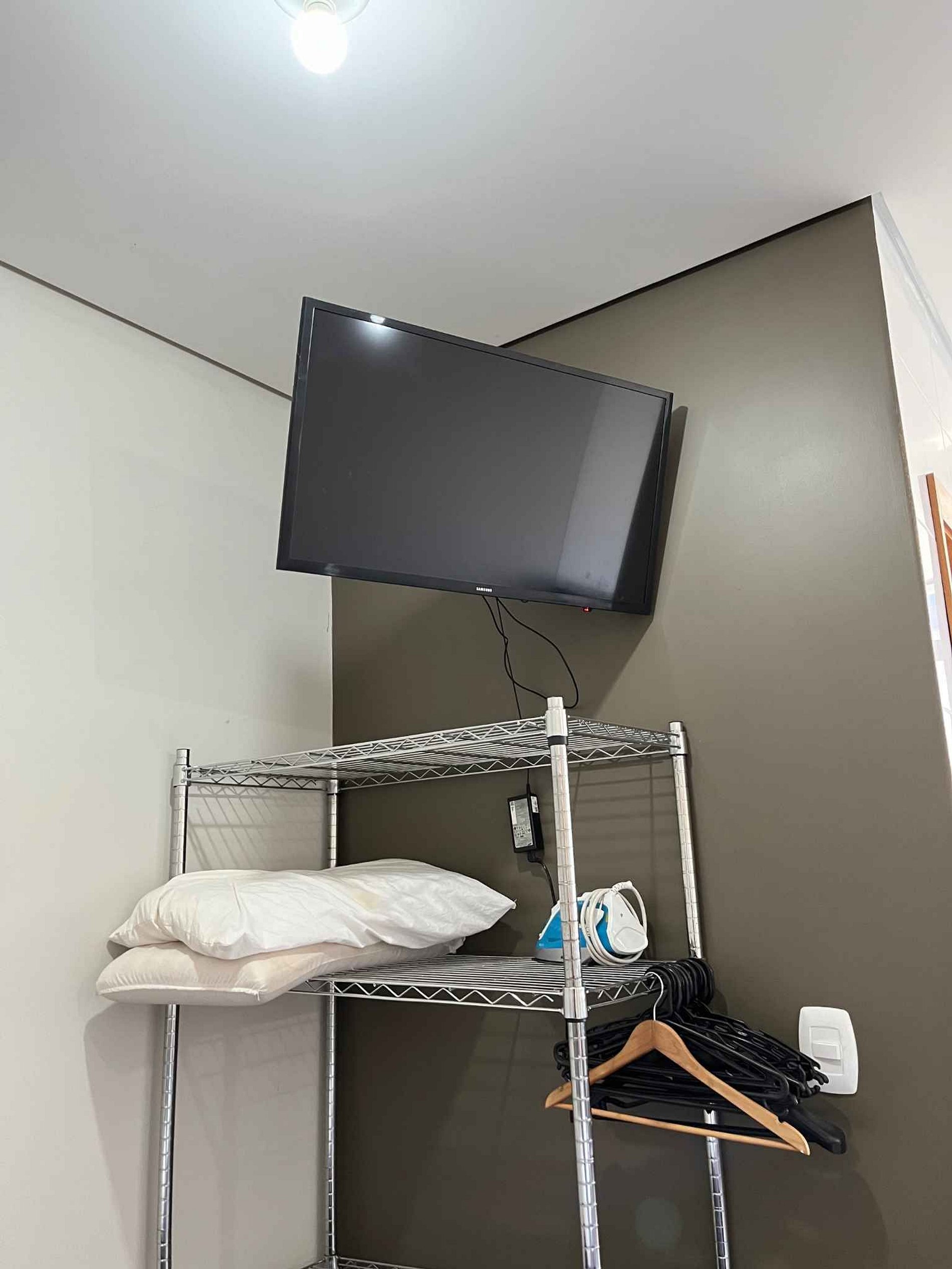 Possui no quarto duas camas de casal, um criado e aramado com cabides além de um colchão de solteiro extra e sofá dois lugares com smartv de 32". Oferece travesseiros, roupa de cama e banho, shampoo e sabonete. Na cozinha americana um cooktop de uma boca, forno de Micro-ondas de 20L, sanduicheira inox grill, liquidificador, garrafa térmica com base de filtro para café e cafeteira elétrica, copos, taças, pratos rasos, pratos fundos, tigelas e talheres e xícaras para seis pessoas. Esta disponível ferro e tábua de passar.