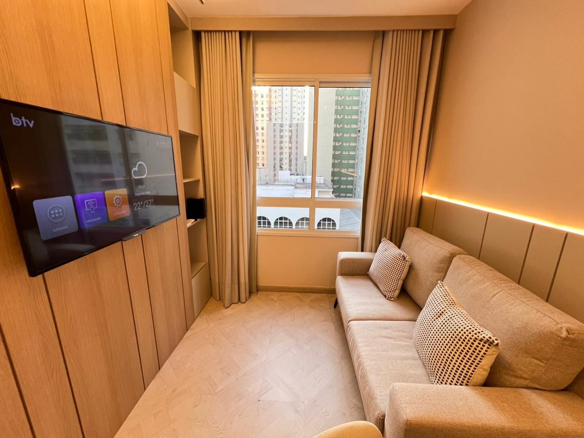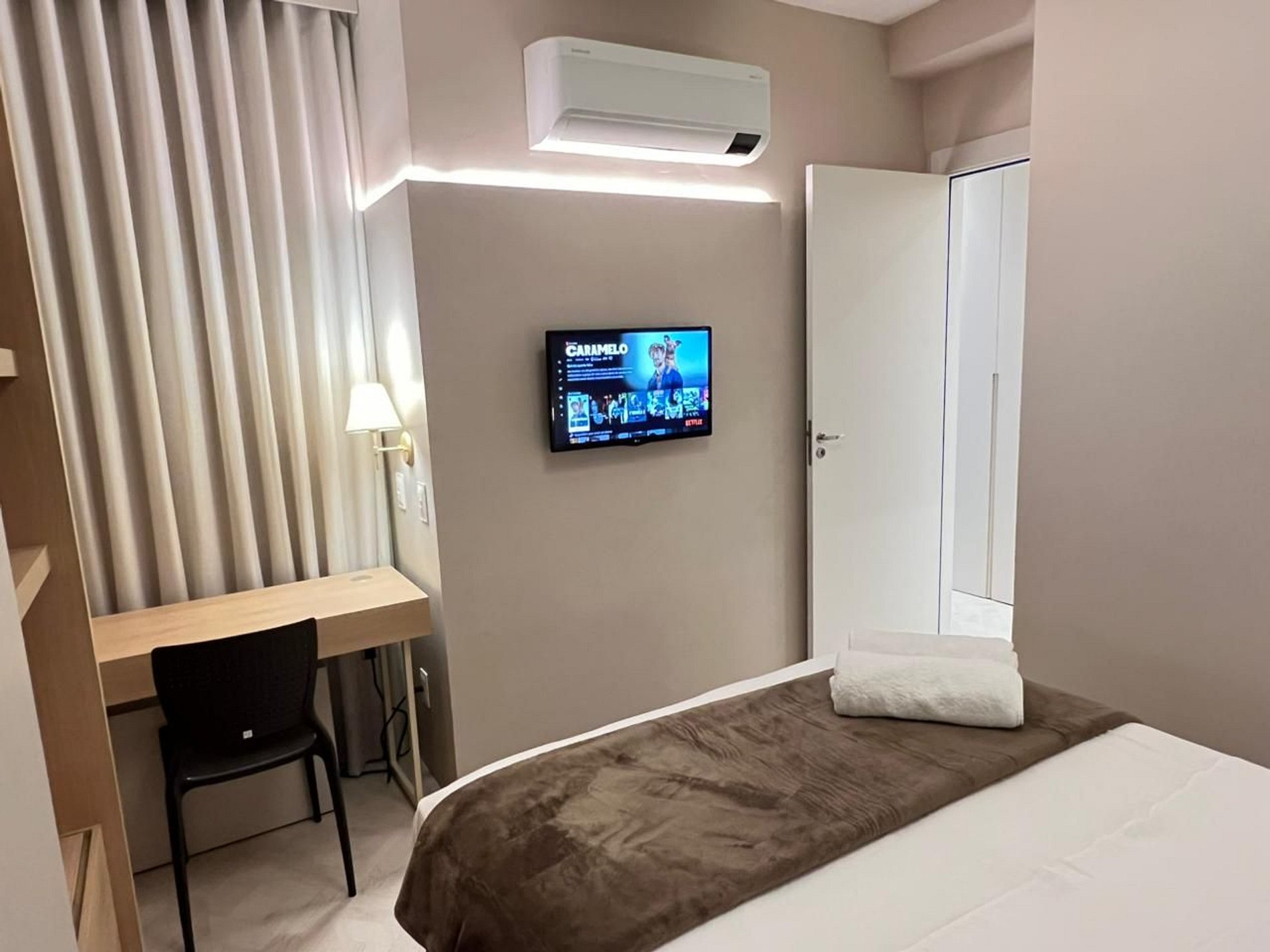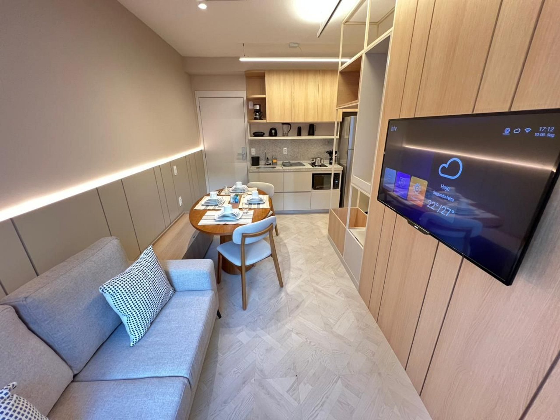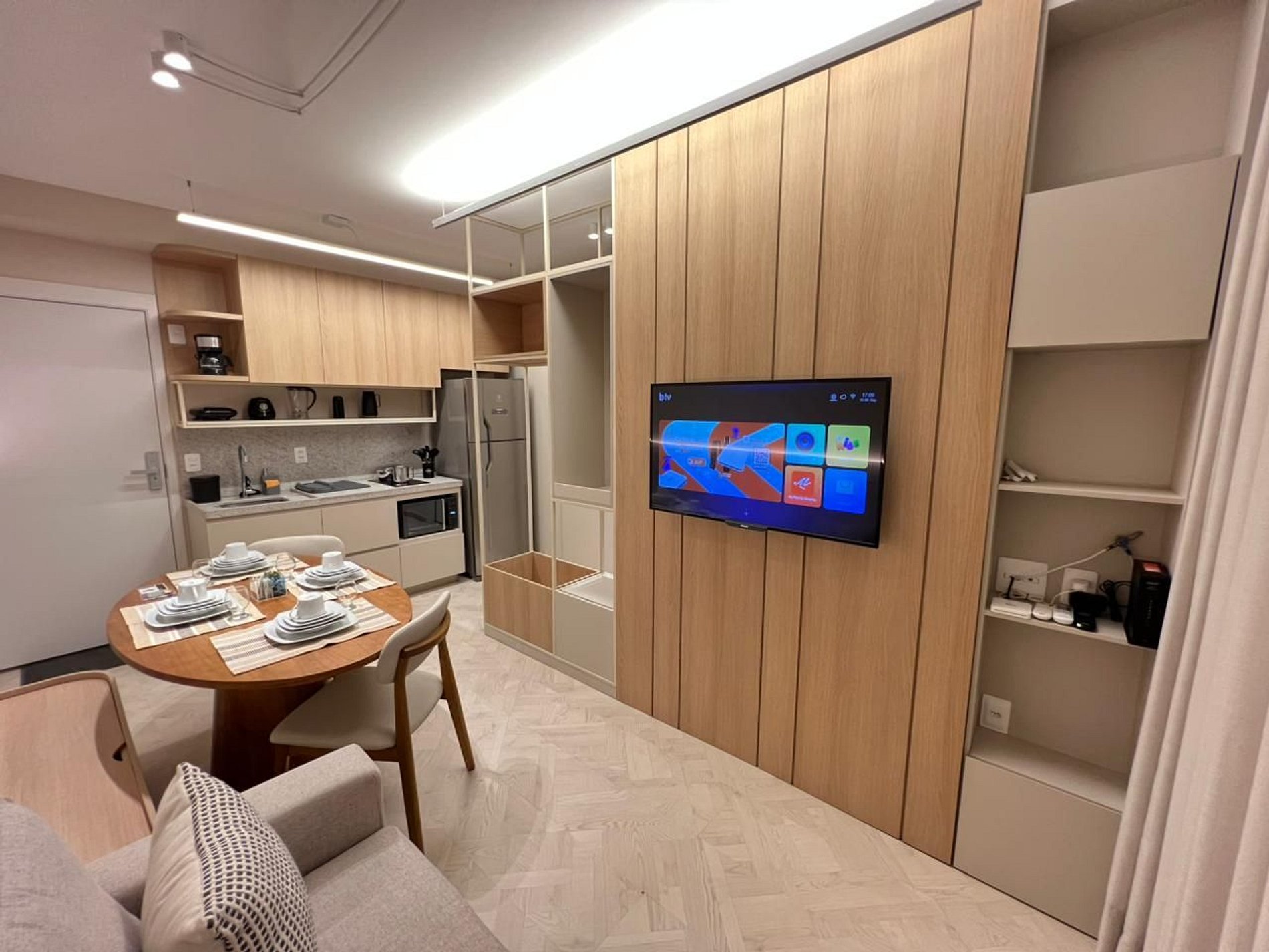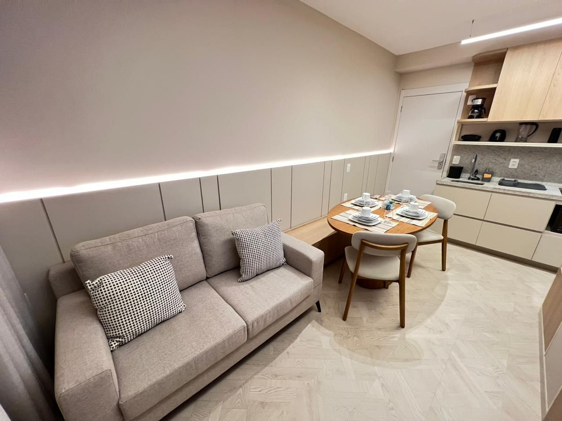O imóvel oferece: • Sala de estar com 02 ambientes - Ar Condicionado, TV e sofá-cama inclusos • Cozinha americana prática e funcional - completa, com itens de cozinha • Banheiro com enxoval de banho, shampoo e sabonete • Portaria 24 horas - segurança • Elevador • Vaga de garagem inclusa
