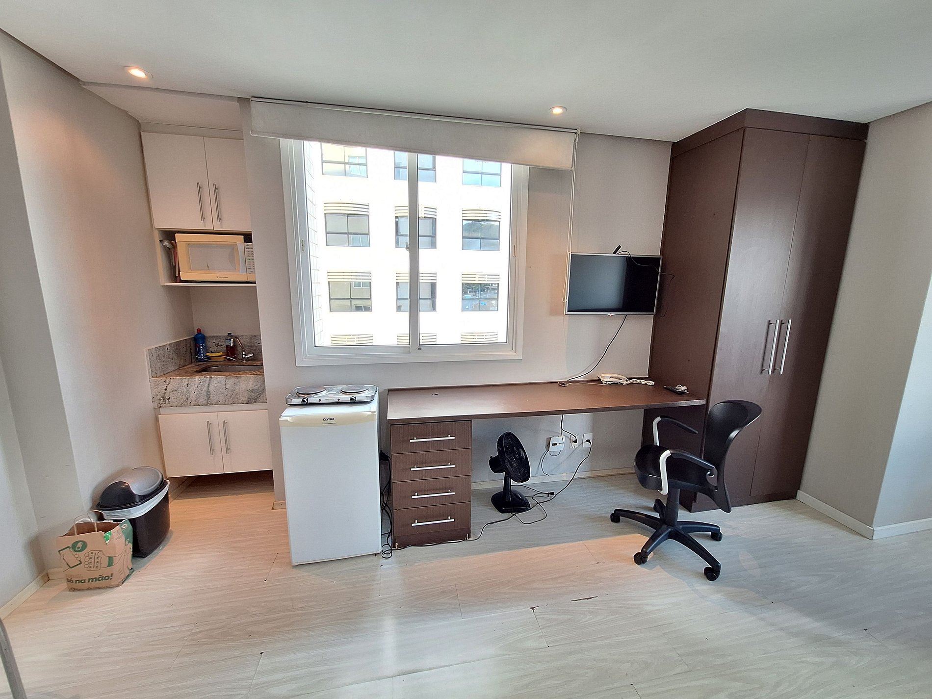 O imóvel oferece: • Sala de estar com 02 ambientes - sala e estação de trabalho, TV e sofá-cama inclusos • Cozinha integrada funcional - compacta, com todos itens de cozinha • Banheiro com enxoval de banho, shampoo e sabonete • Lazer • Portaria 24 horas - segurança • Elevador • 01 Vaga de garagem