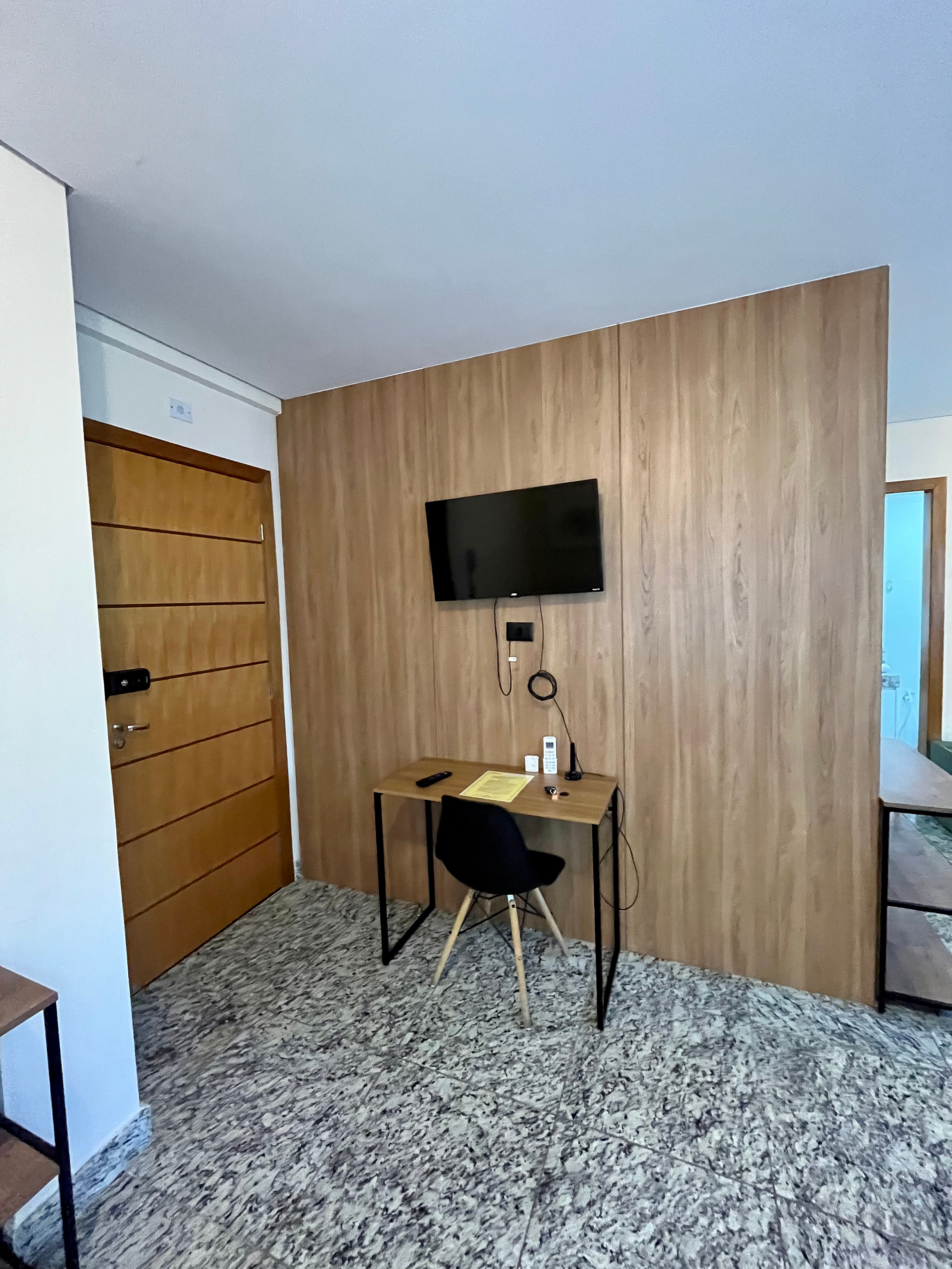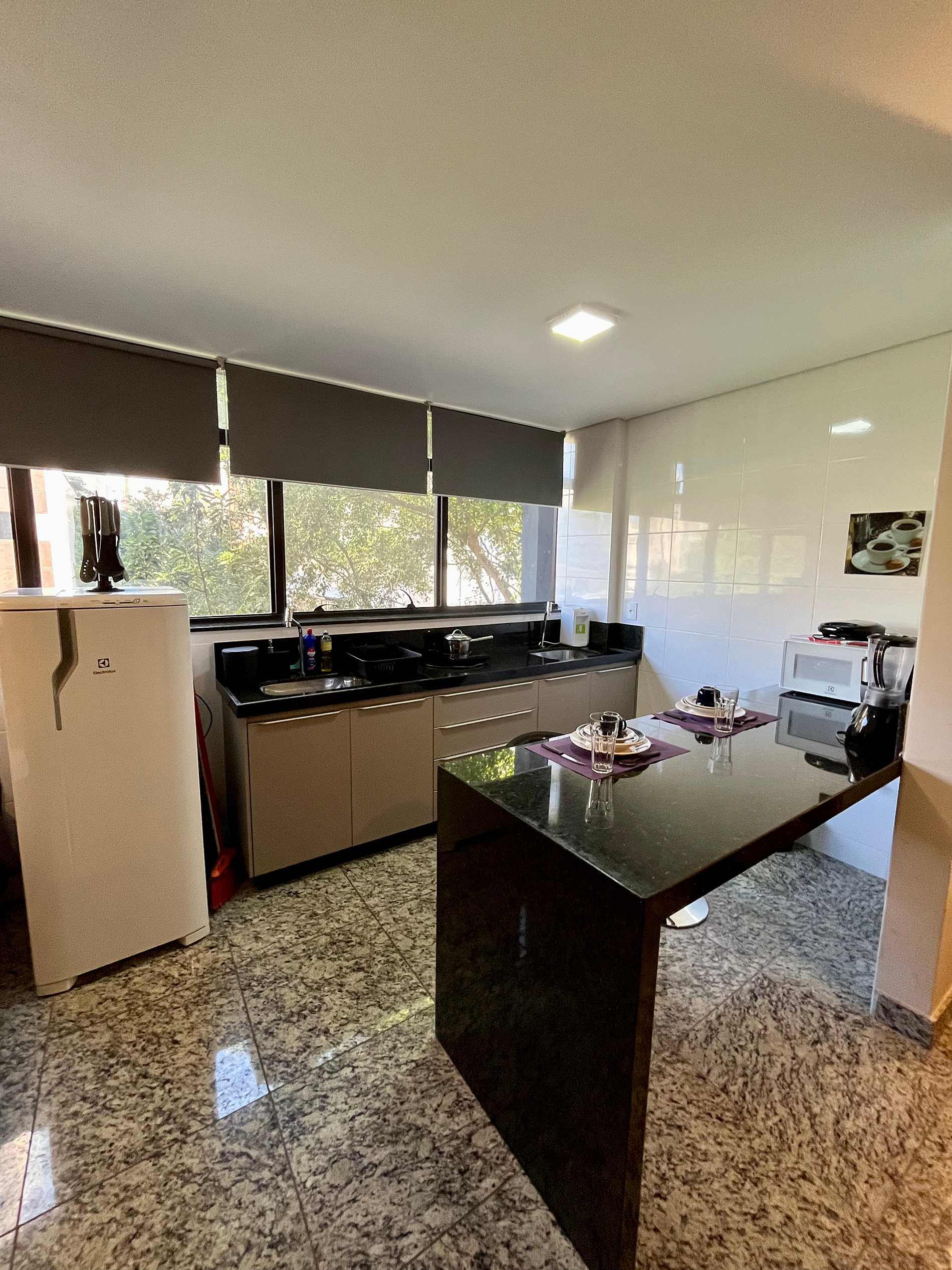 Apartamento tipo studio na região de Lourdes, com aproximadamente 40 m². O apartamento fica no quinto nível do prédio, possui elevador. Wi-Fi (250 megas) e estacionamento para um carro. Todo o mobiliário, roupa de cama e eletrodomésticos novos. Esta situado ao lado do Terminal Belo Horizonte Alvares Cabral do Conexão Aeroporto, com acesso fácil ao comércio, restaurantes, bares, lojas, supermercados.