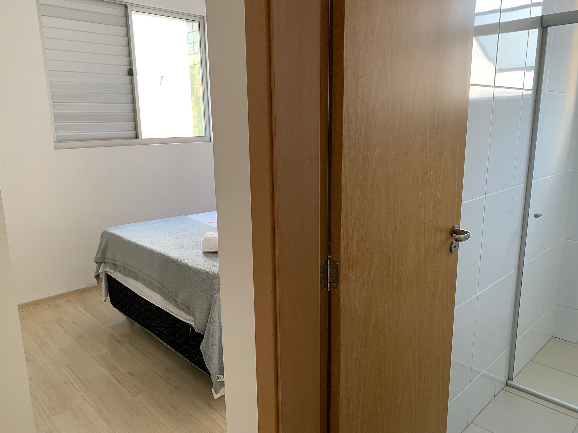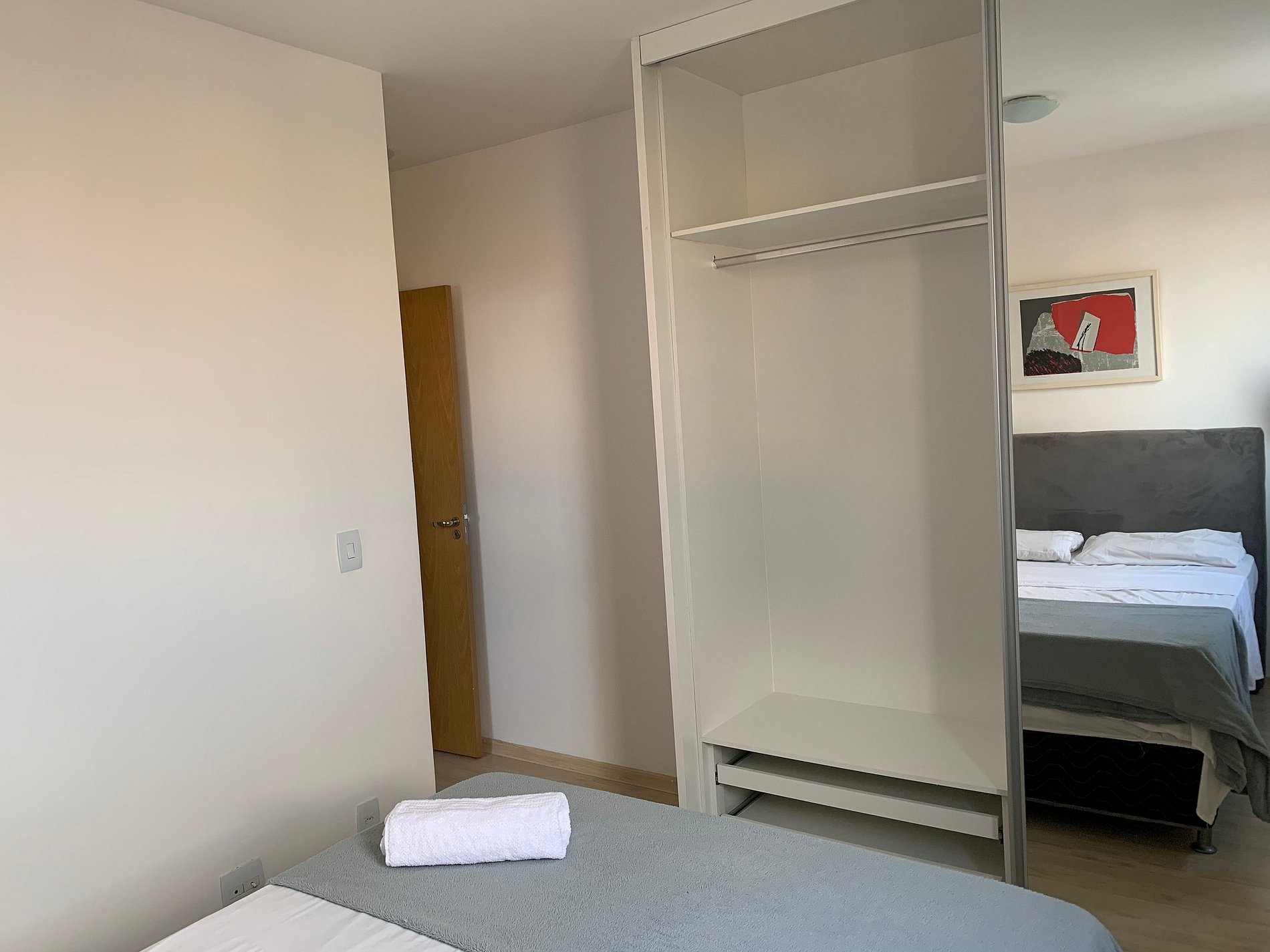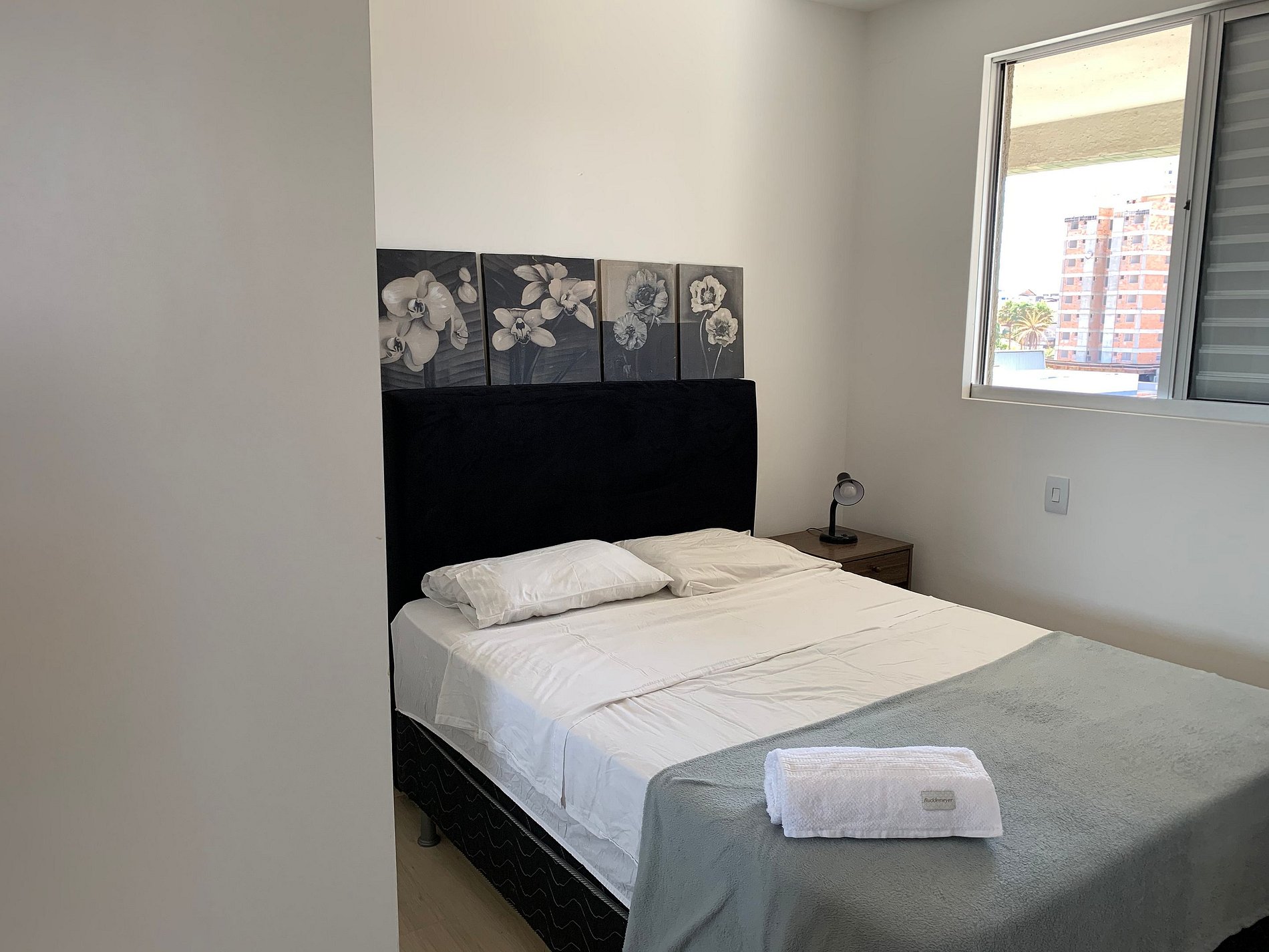Apartamento novo, moderno, de aproximadamente 70 m² com dois quartos sendo uma suíte, um banheiro social, sala com dois ambientes, cozinha e área e banho de serviço. Todo o mobiliário, roupa de cama e eletrodomésticos novos. Esta situado em região residencial, local silencioso, bem iluminada e arejada. Fica no quinto nível (apto 502). O prédio possui elevador. Wi-Fi gratuito em todos os cômodos e estacionamento para dois carros. Esta situado à uma quadra da Via Expressa.