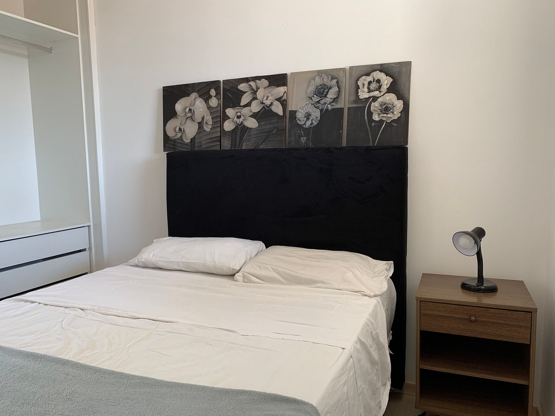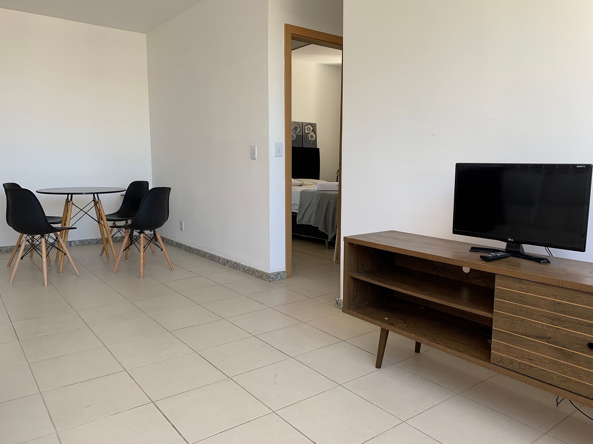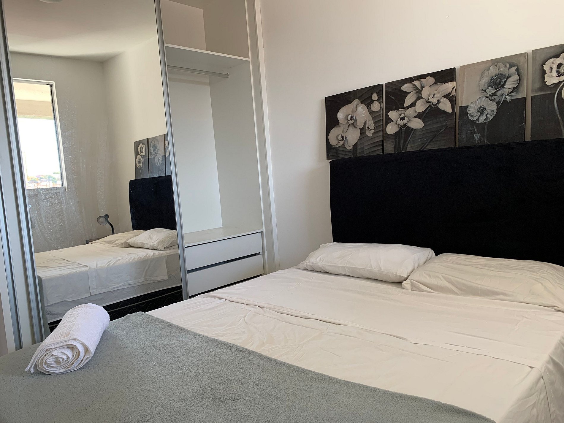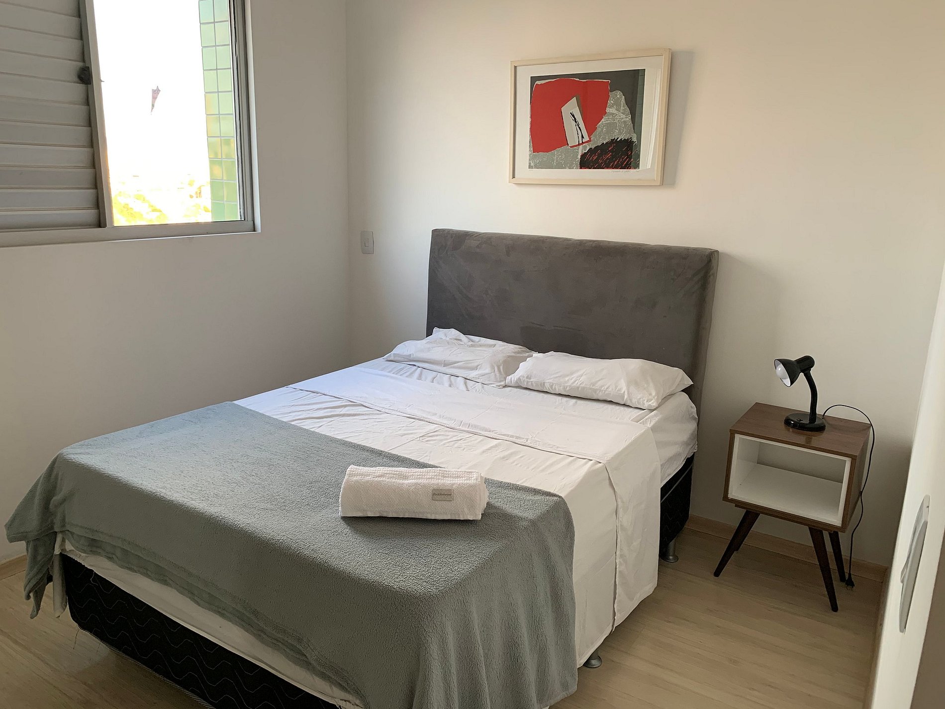 Apartamento novo, moderno, de aproximadamente 70 m² com dois quartos sendo uma suíte, um banheiro social, sala com dois ambientes, cozinha e área e banho de serviço. Todo o mobiliário, roupa de cama e eletrodomésticos novos. Esta situado em região residencial, local silencioso, bem iluminada e arejada. Fica no quinto nível (apto 502). O prédio possui elevador. Wi-Fi gratuito em todos os cômodos e estacionamento para dois carros. Esta situado à uma quadra da Via Expressa.