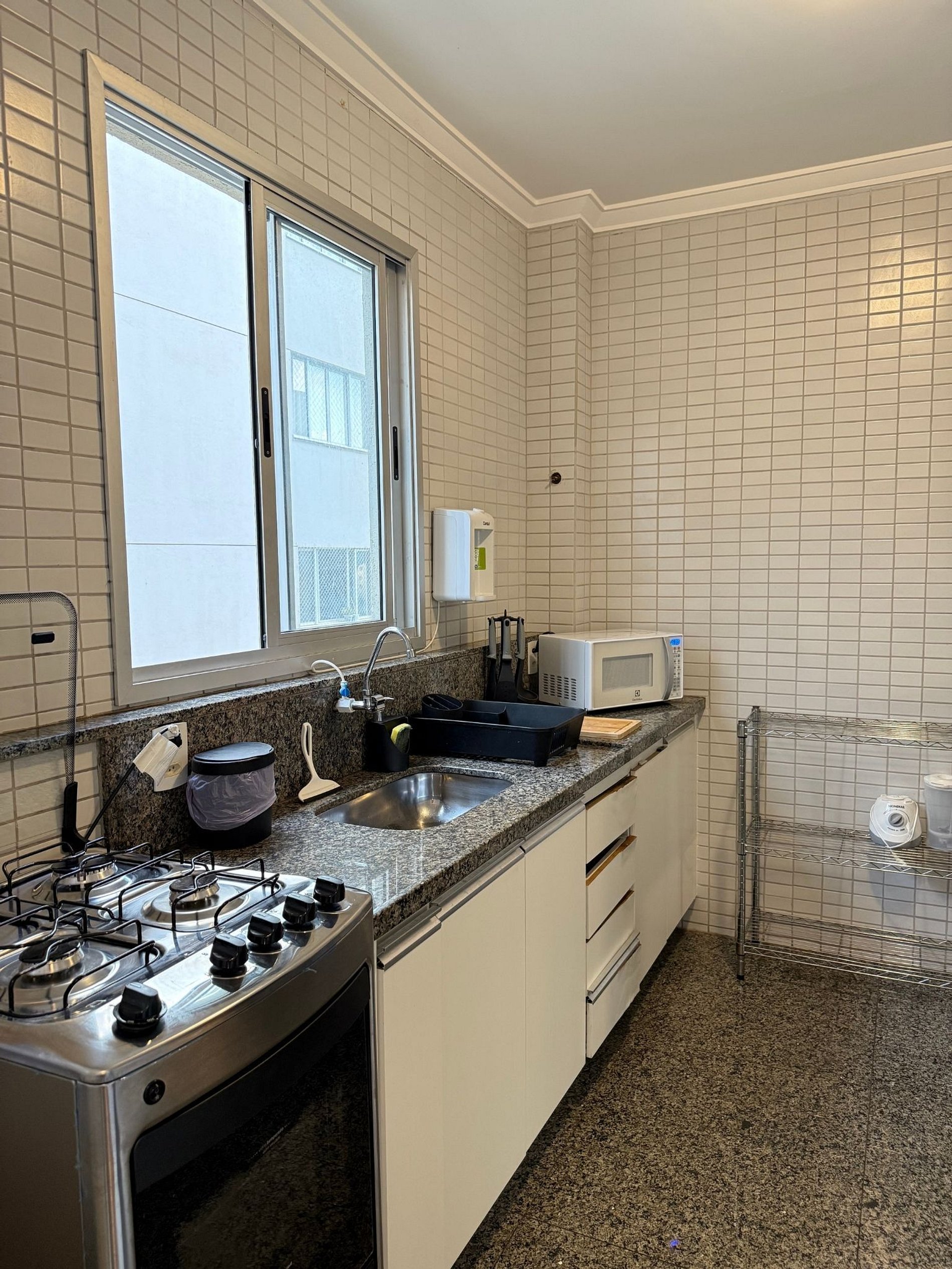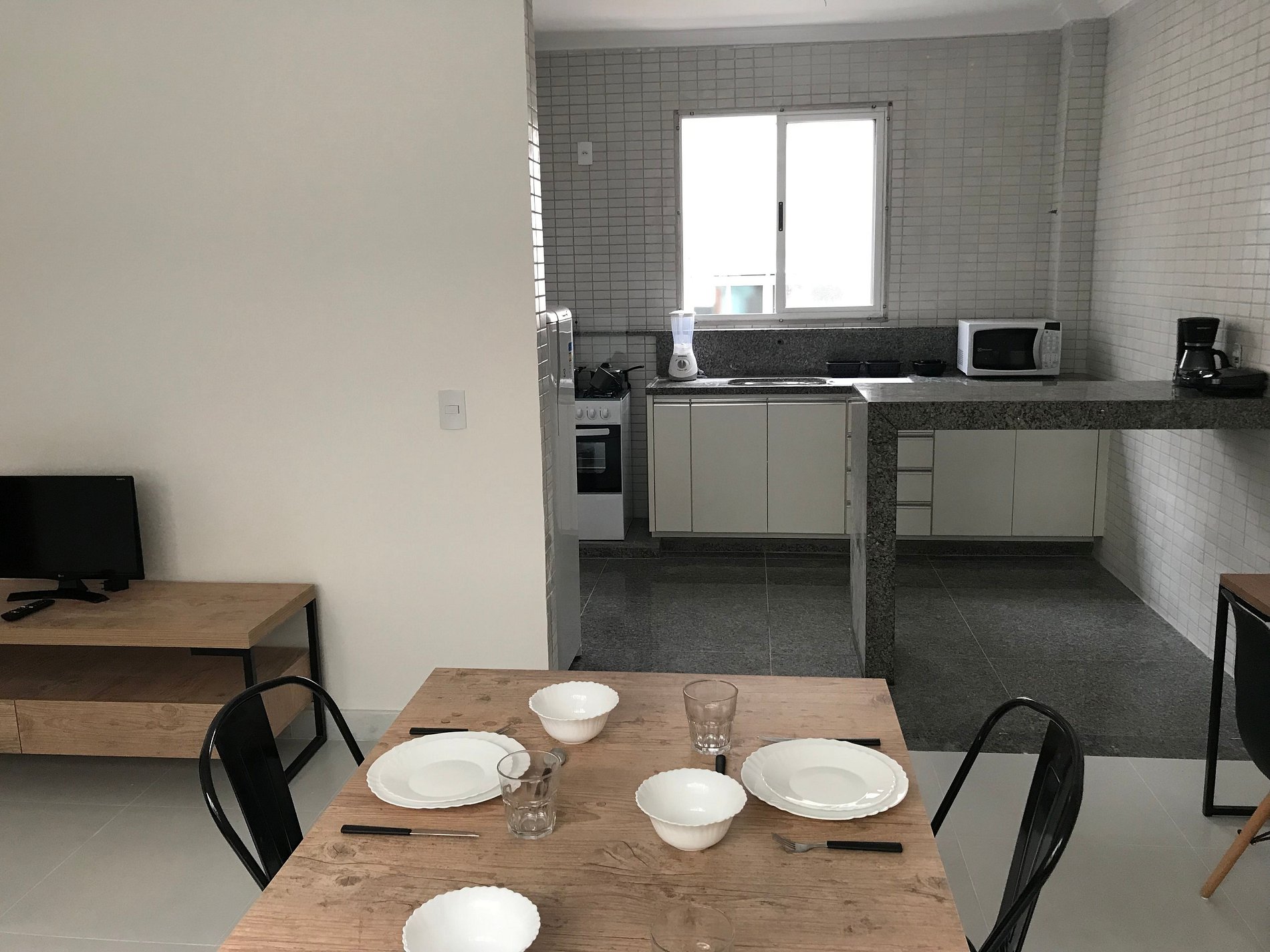 Ideal para grupos e famílias, o apartamento é espaçoso, confortável e muito bem equipado. Conta com três quartos com camas box de casal, sala com sofá-cama e espaço de trabalho, cozinha completa e área de serviço com lavadora e utensílios.