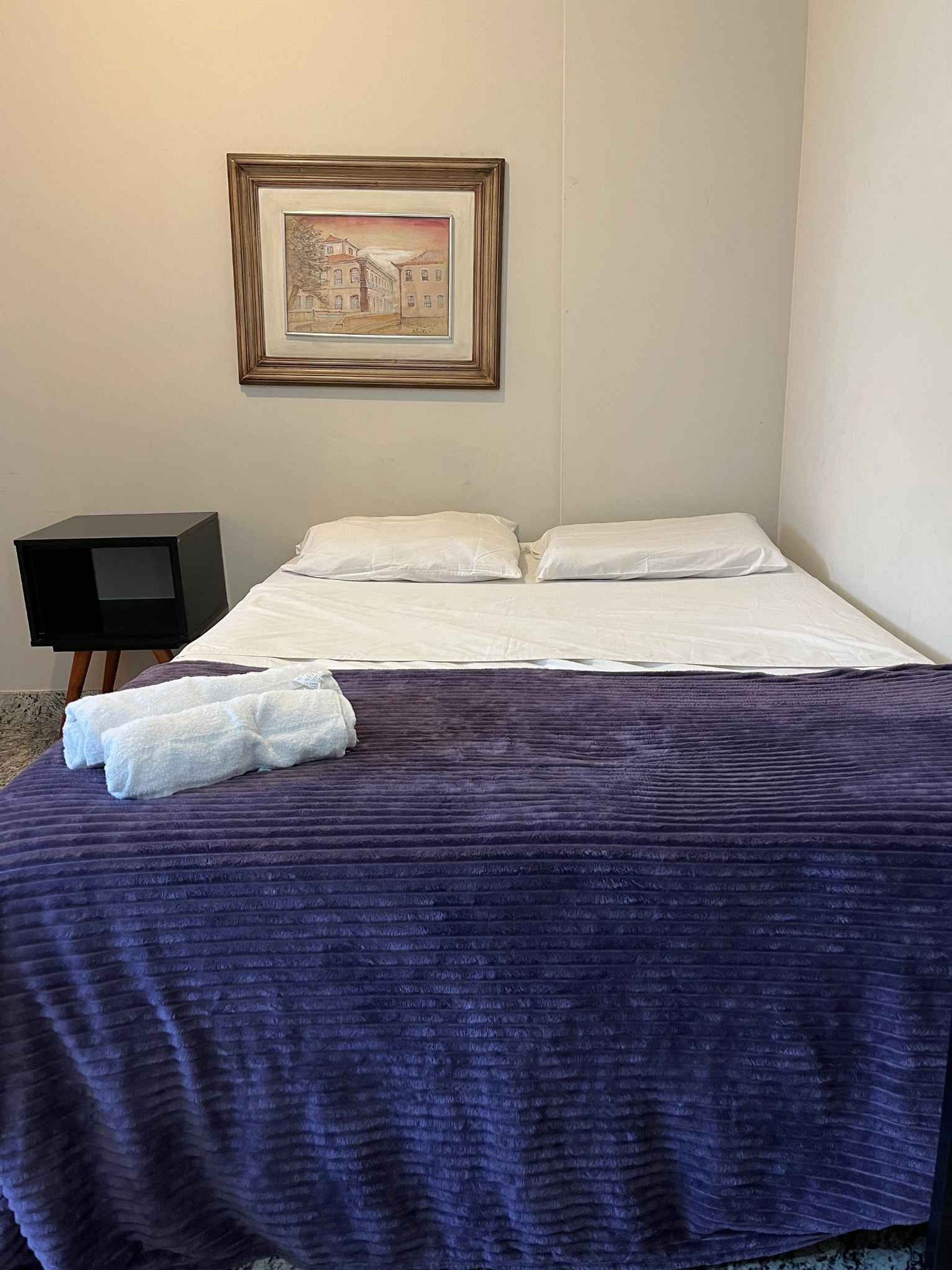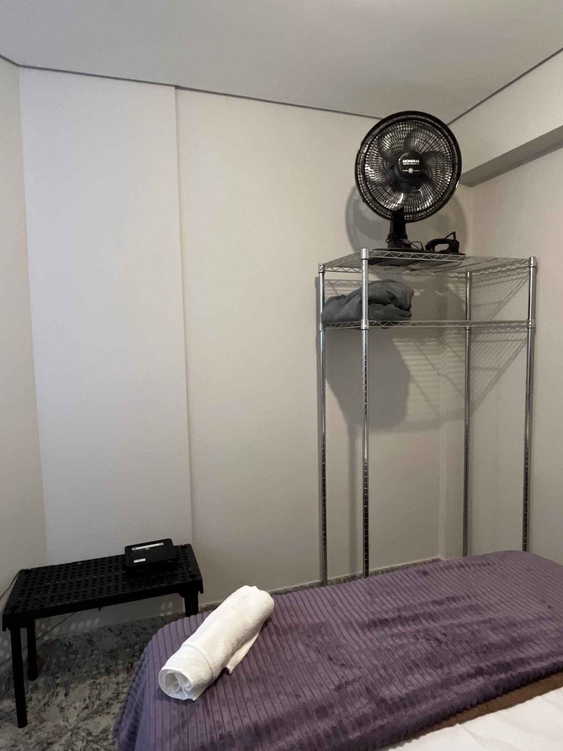 Possui duas camas de casal, um criado e armário com cabides e televisão. Oferece travesseiros, roupa de cama e banho, shampoo e sabonete. Como apoio há um forno de Micro-ondas de 20L, sanduicheira inox grill, liquidificador, garrafa térmica com base de filtro para café e cafeteira elétrica, copos, taças, pratos rasos, pratos fundos, tigelas e talheres e xícaras para quatro pessoas. Esta disponível ferro e tábua de passar.