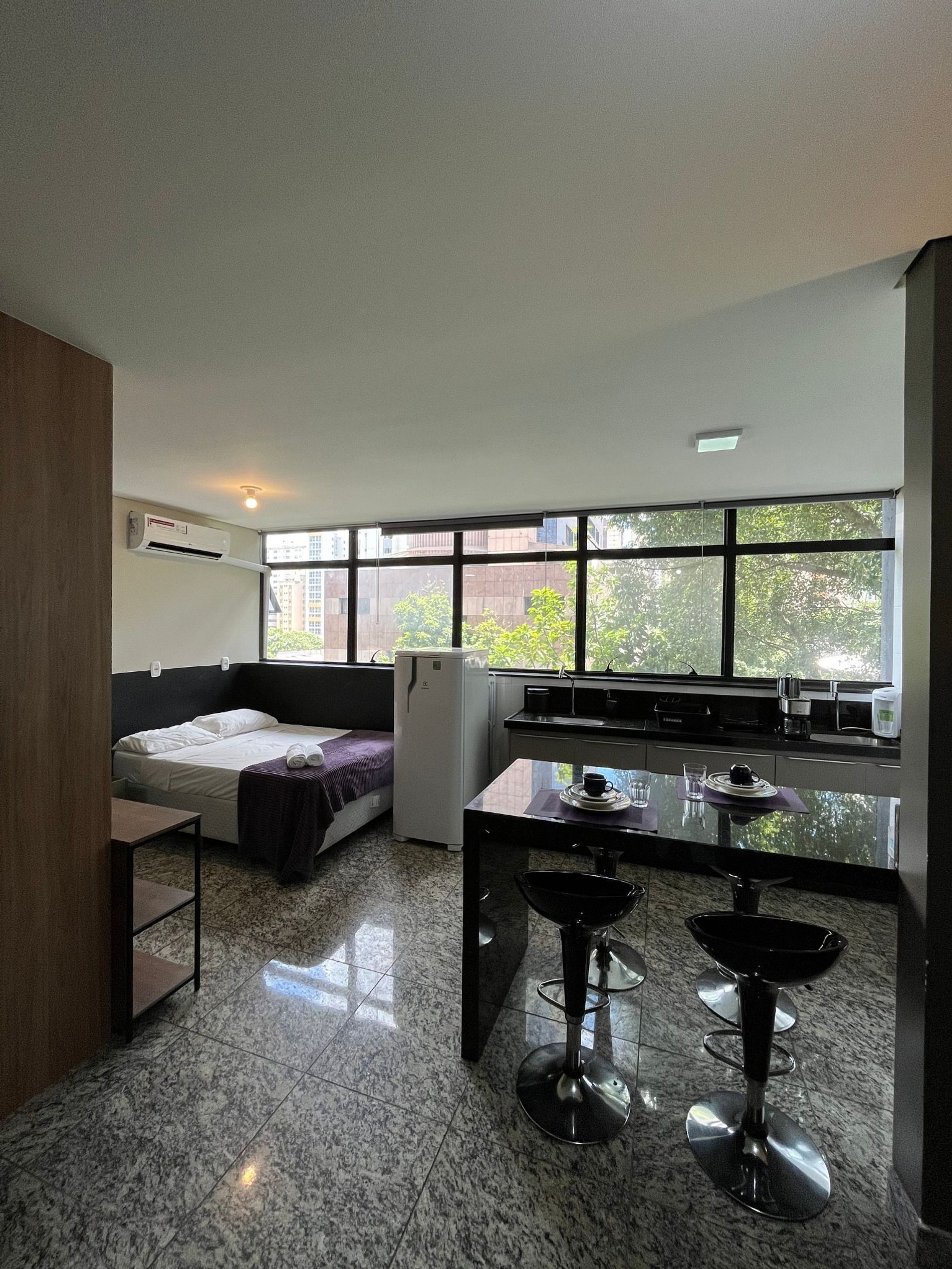 A unidade Locking`s Lourdes 4 é um studio de um quarto na região de Lourdes, com aproximadamente 40 m². O studio fica no quarto nível do prédio, possui elevador. Wi-Fi (250 megas) e estacionamento para um carro. Todo o mobiliário, roupa de cama e eletrodomésticos novos. Esta situado ao lado do Terminal Belo Horizonte Alvares Cabral do Conexão Aeroporto, com acesso fácil ao comércio, restaurantes, bares, lojas, supermercados.