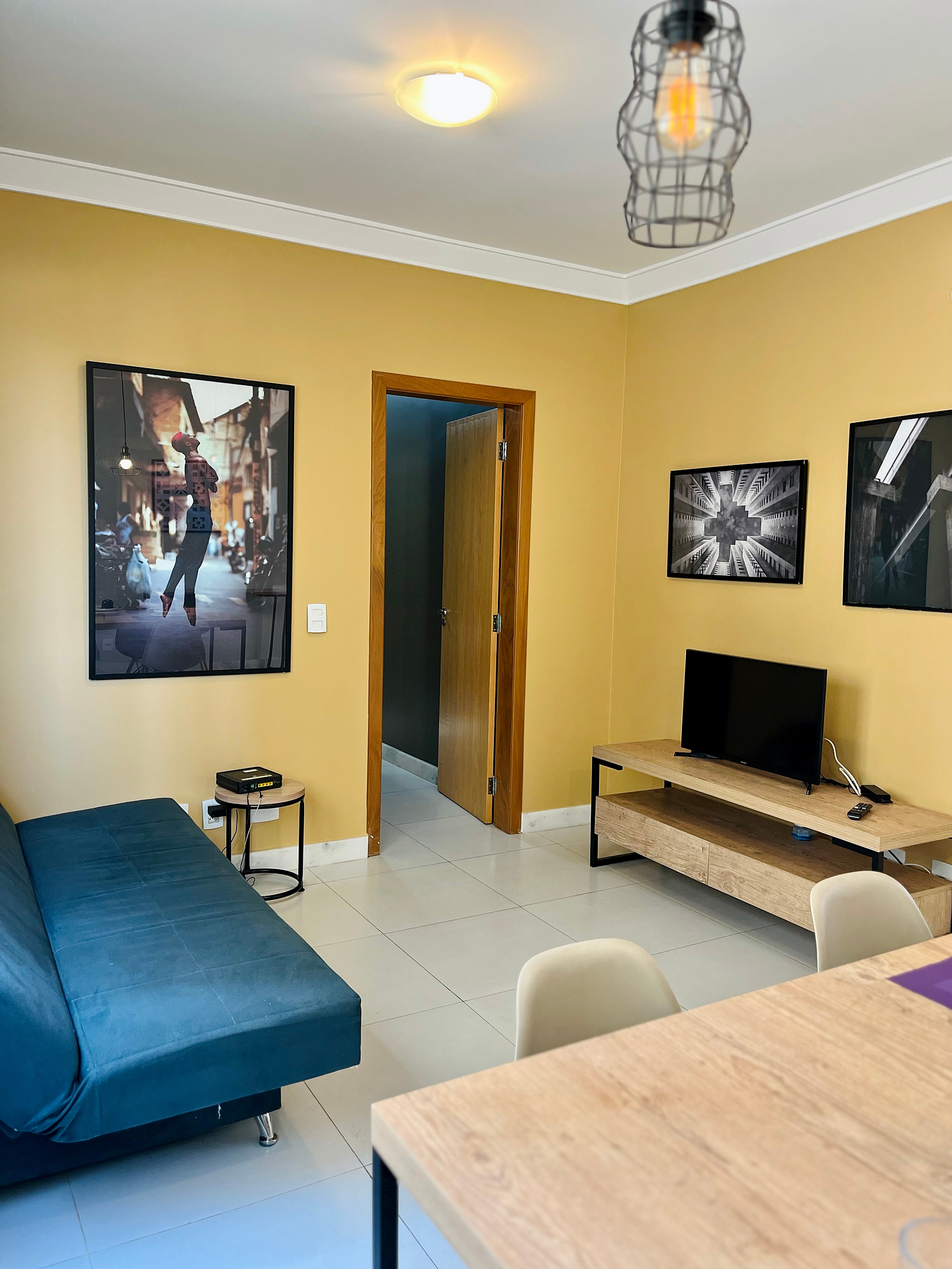Ideal para grupos e famílias, o apartamento é espaçoso, confortável e muito bem equipado. Conta com três quartos com camas box de casal, sala com sofá-cama e espaço de trabalho, cozinha completa e área de serviço com lavadora e utensílios.