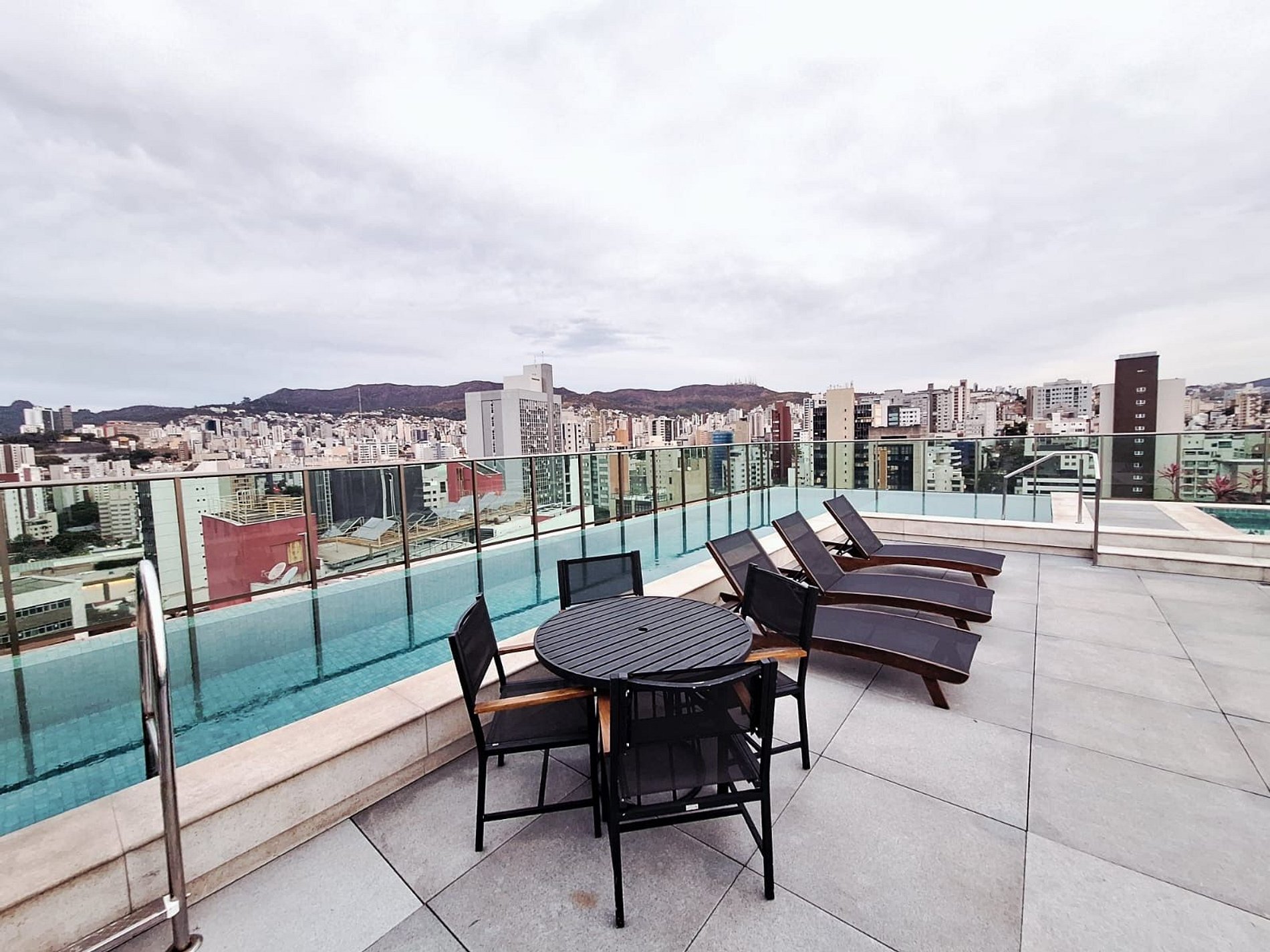 O edifício conta com piscina, academia, sauna e salão de festas, todos no Rooftop (será permitida a entrada de apenas 02 (dois) hóspedes por vez nessas áreas, devendo ser respeitadas as regras de boa convivência e da convenção do condomínio).