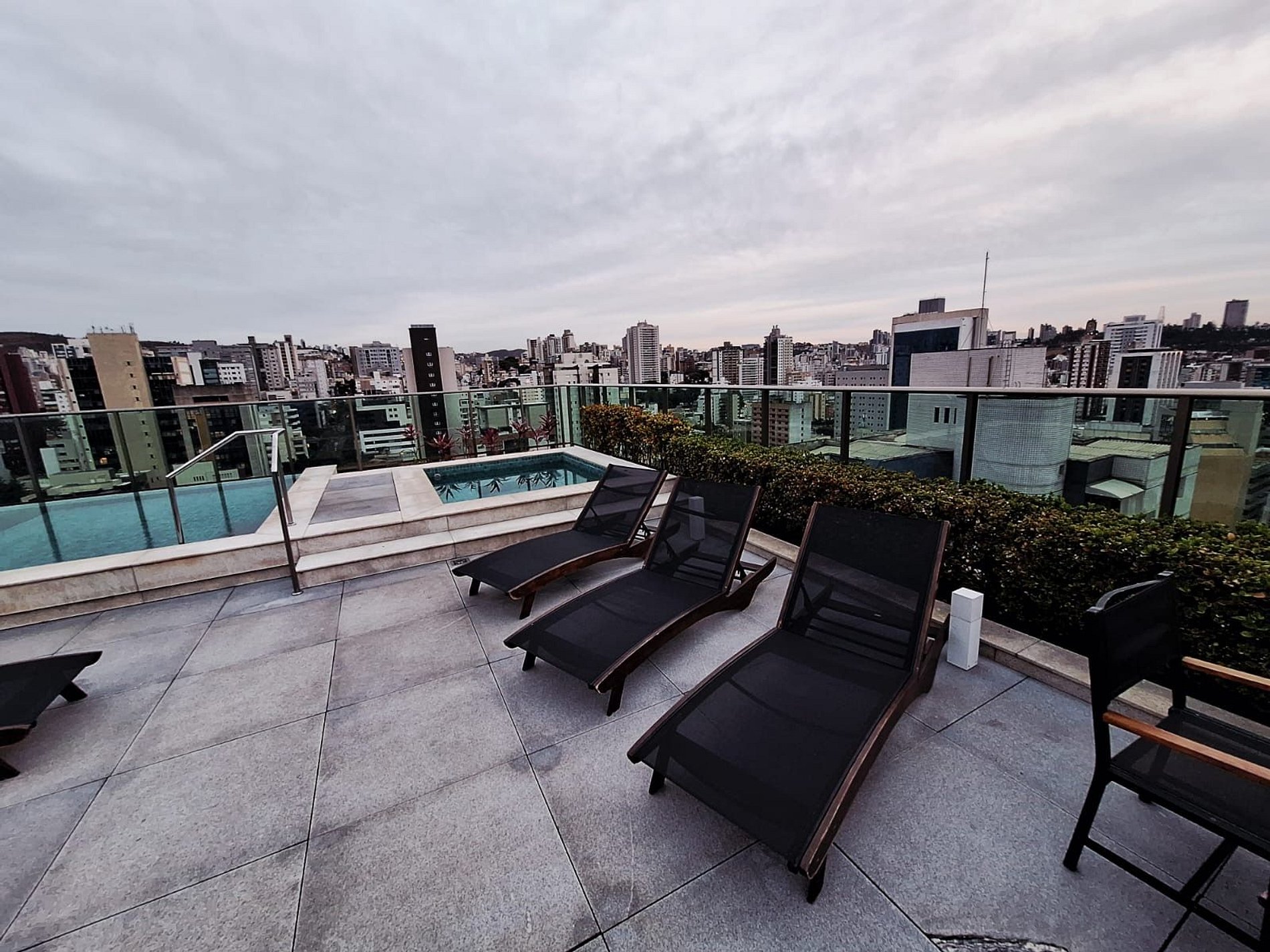 A unidade Locking´s Savassi 6 é um apartamento de dois quartos de luxo, novo, amplo e moderno de aproximadamente 60 m² , sala com dois ambientes, cozinha americana, dois banheiros. Situado no ponto mais nobre de BH, é bem iluminado e arejado. Fica no déximo primeiro nível. O prédio possui elevador. Ar condicionado e Wi-Fi em todos os cômodos e estacionamento para dois carros. Todo o mobiliário, roupa de cama e eletrodomésticos novos.